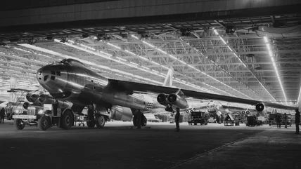 According to Boeing, every single big jet owes its existence to the B-47. It was a jet of "firsts" when it was first prototyped in 1947. It had swept back wings at a 35-degree angle as opposed to straight wings as seen on the previous B-29 bomber. Its 600+ mile per hour top speed was powered by jet engines hanging underneath the wings, when every other bomber was still propeller driven.