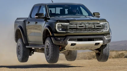 Under the Ranger Raptor's heavily-sculpted hood is a familiar engine: Ford's 3.0-liter EcoBoost V6. Co-developed with the powertrain for the Bronco Raptor, here it's good for 405 horsepower and 430 lb-ft of torque: down slightly from the SUV, but still more than impressive for this midsize pickup segment. The twin-turbocharged V6 is paired with a 10-speed SelectShift automatic transmission, with cast magnesium alloy paddle shifters on the steering wheel for those who want to take over themselves.