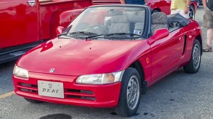 The Honda Beat was launched in 1991 as an exclusively Japanese-market (JDM) car, with styling designed by Pininfarina. It proved to be the most successful kei sports car of its era, with 33,635 examples built between its launch and the end of production in 1996. Around two-thirds of those units were sold within the first 18 months of production, making later-model cars much rarer to find. The car's peak output of 63 horsepower didn't arrive until 8,100rpm, meaning that to get the best out of the Honda, you had to keep it as close to its redline as possible.