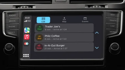 The update brings ETA to your car's in-dash unit with hard-to-miss labels showing estimates to your favorite and frequently visited locations. You can also view these destinations on a map, or view conditions for addresses tied to upcoming calendar events, complete with recommended leave times to help you maximize your day. One tap will get you started with directions in Apple Maps. You can download the update right now at the Apple App Store. It should appear in your list of CarPlay apps the next time your phone syncs with your vehicle.