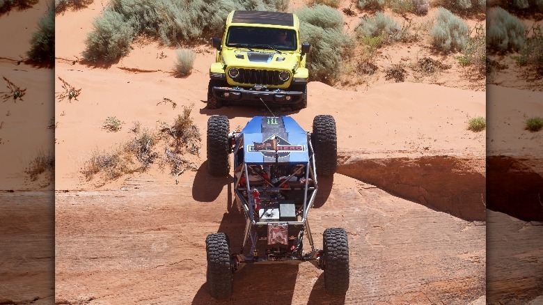 I have a suspicion that the electric AC traction motors, combined with four-wheel low gearing, a disconnected sway bar, and locking rear differential helped the Jeep perform well over you average lifted truck. I picked a Jeep that had the doors removed which ended up being a benefit instead of a hindrance, as I could see the placement of my wheels along narrow ledges and climbs.