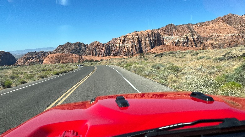 Sitting behind the wheel and grinning like a child at the loud burbly V8 under the hood is one thing, and likely a large portion of the 392's appeal. Actually driving it is a different experience entirely. Here are the objective truths about my first time driving the 392 around St. George, Utah. First, Utah is absolutely gorgeous and the majesty of the outskirts of the Mojave Desert look borderline fictional and I couldn't tell whether or not I has accidentally wandered onto the surface of Mars. Second, the 392 absolutely moves. Prior to having driven a Jeep, I knew that the brand wasn't associated with sheer speed, and the 392 took all of my expectations and shoved them into a locker after gym class.