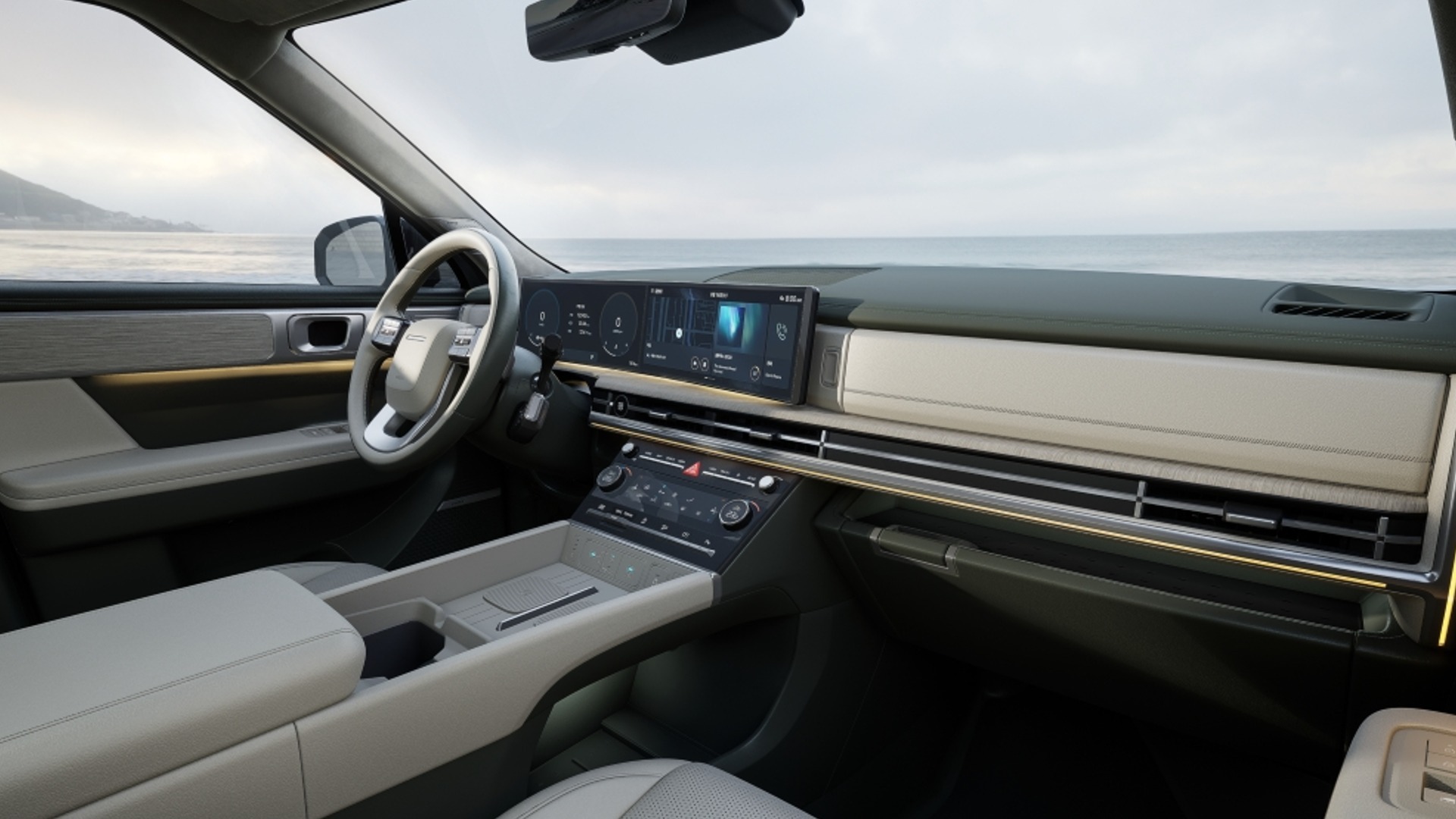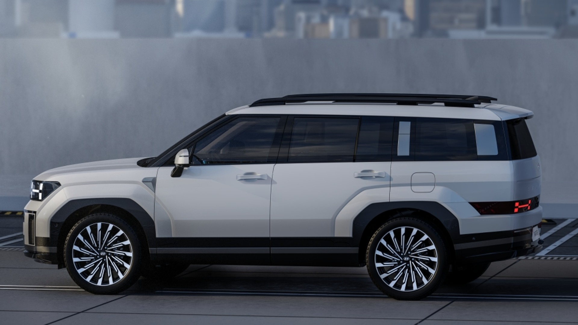 Exact numbers have not been disclosed ahead of the SUV's official launch in August, but Hyundai has revealed that it will have huge 21-inch wheels, and the interior will feature a curved display that stretches over the front dashboard. The current most expensive gas engine Santa Fe Calligraphy is only available with 20-inch wheels. The front grille, reminiscent of big American SUVs like the GMC Yukon, features headlights shaped like the letter "H." The taillights feature the same design cue.