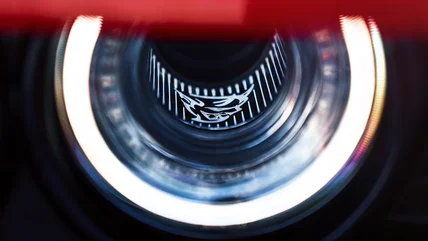 Moving to the exterior, the already-slick "air catchers" that replace the inboard headlamps to feed fresh air to the engine are lined with an image of an SRT Hellcat, SRT Demon, or T/A insignia, depending on the model.