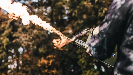 Once the burner is active, the trigger is pulled, the fuel flows through the casing, and passes through the burner's flame, igniting on its way out. Just like that, a stream of fire is born.