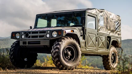 The Toyota has another trick up its sleeve in the form of rear-wheel steering, which allows the rear tires to turn up to 12 degrees in either direction. Practically speaking, that means the giant truck has a turning radius of just 18.4 feet — less than a modern Toyota Camry, and more than eight feet tighter than the Humvee.