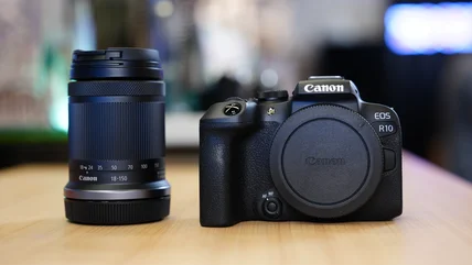 The Canon EOS R10 is the definitive mid-range starter camera akin to Canon's old-school Rebel DSLR series. It's got a beefier body than on the EOS R50, which means it's heavier but also more ergonomic to use — especially if you're using larger lenses. The R10 hits its own balance of price and performance. This model is capable of shooting up to 23 fps with its 24.2MP APS-C crop sensor. In addition, its autofocus system for stills and video uses the subject-tracking capabilities found on Canon's pro-shooter, the EOS R3, whereby it's capable of detecting people, animals, and vehicles.