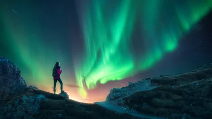 Aurora borealis, or northern lights, is one of nature's most spectacular and, at the same time, complex phenomena. The mesmerizing light show we see here on our planet results from particles that originate roughly 93 million miles away from the Sun. The particles travel across space and collide with Earth's atmosphere, leading to wavy light patterns in the polar night sky.