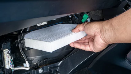 You could buy a cabin filter online or at the dealership. But to save money on labor, park your car, turn off the engine, and open the glove box. For some vehicles, unscrewing the glove box hinges could require a Philips screwdriver. But for most cars, mildly pressing on both sides of the glovebox is enough to tilt it lower or remove it altogether to access the cabin filter tray behind. The final step is to press the tab, slide the old filter away from the tray, and insert the new filter in the same direction.