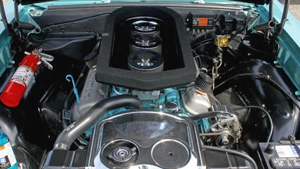 Also called the Chrysler wedge engines due to the way their combustion chambers are shaped, a Charger or Challenger with the 440 delivered 375 horsepower and, due to its huge displacement, an enormous amount of torque. This engine could be ordered in various configurations, but the highest performing was the six-pack, which came with a trio of two-barrel carburetors, often topped with an air scoop poking out of the hood.