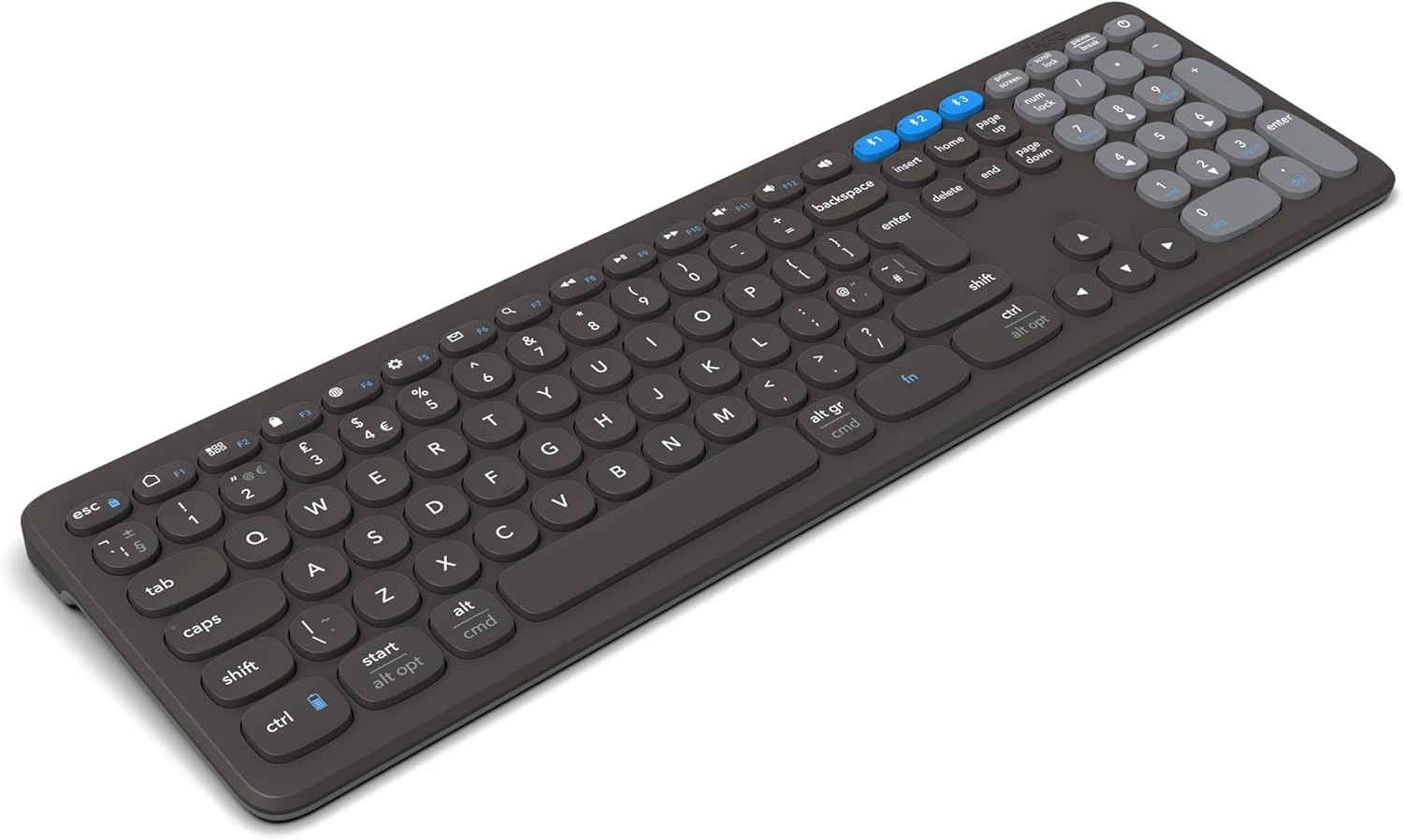If you rely on the Numpad and can't do without it but still want a small form factor of a slim keyboard, the ZAGG Pro Keyboard may be a good solution. Competitively priced at $89.99 on Amazon, the reduced-sized F keys and smart layout help reduce the overall footprint of the peripheral. The keyboard measures 1.1 x 19.49 x 6.02 in. and weighs 34.82 ounces, making it wider and heavier than some mini keyboards. Still, the device is thin and lightweight enough for a clutter-free desk while still retaining the Numpad and Home keys. Plus, if you don't want or need the numpad, there are two other options — mid-size and compact.