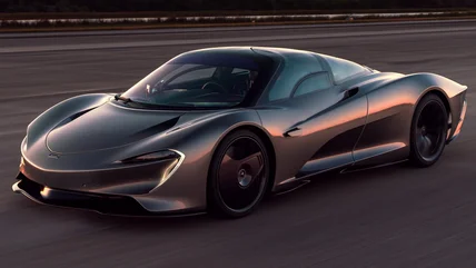 The fastest McLaren made to date, the Speedtail "Hyper-GT" boasts a top speed of 250 mph. While many of the most exclusive McLarens opt for a bare-bones approach to interior furnishings in a quest to save weight, the Speedtail is a much more lavish affair, with leather upholstery across the whole cabin and a focus on comfort as much as performance. Not that McLaren would ever compromise on the latter, of course: the car's gas-hybrid system packs 1,035 horsepower and can reach 186 mph from a standstill, nearly four seconds faster than its predecessor, the P1.
