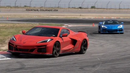 On a gritty parking lot behind the grandstands of Pikes Peak International Raceway, we as a collective found out. This time around, Chevy dropped media drivers into a fleet of E-Rays shod in the optional Michelin Pilot Sport 4S tires, as befitting the more aggressive series of exercises ahead. First, I loped through an autocross circuit littered with cones for a sighting lap of the tight turns, highlighted by a center ring intended for donut practice. Then I lined up for a first real rip around the course, immediately regretting the mistaken decision to left-foot brake with those carbon-ceramics, which led to plenty of skittering as the chompers hauled down speed much harder than expected after my time on the all-seasons.