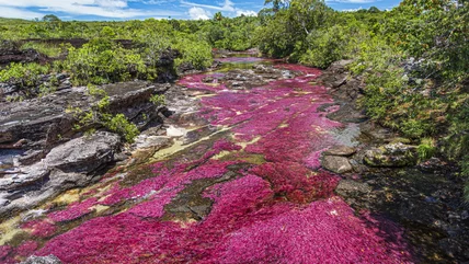 When it comes to natural beauty, not many other bodies of water can compare with Colombia's Caño Cristales or the "river of five colors." Located a little over 100 miles south of Bogotá, this rare, naturally occurring phenomenon causes the river's crystal-clear water to light up in a wild array of beautiful rainbow colors during a specific time of the year.