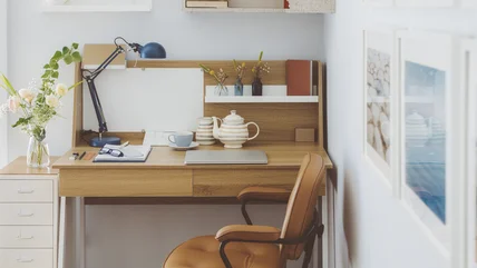 Working at a desk usually means a laptop or computer monitor takes up much of the space. Adding some shelves isn't a bad idea if you have a small desk with barely any extra room to set things down. You can grab a set of floating shelves for around $20 on Amazon, and these will be perfect for holding books, pictures, or anything else you might otherwise have on a desk.