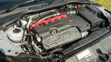 Audi currently offers a 2.5-liter inline five-cylinder turbo in two models: the RS3 and the TTRS. The "RS" denotes the German language label Renn Sport, which translates to "racing sport." It's a fitting term for an engine capable of 401 horsepower and 369 pound-feet of torque, delivering both of those whopping benchmarks across a vast sweep of the tachometer's needle. The torque maximum is sustained from 1,750 to 5,850 rpm, and drivers can expect peak horsepower delivery from 5,850 rpm to the 7,000 rpm redline.