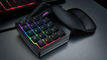 Razer is one of the largest manufacturers of gaming peripherals. The company produces controllers, headphones, and even laptops and GPUs. Razer also manufactures several lines of keyboards, all backlit with rainbow RGB lighting for extra gaming flair. One of these keyboards is the Razer Tartarus V2. Unlike other keyboards, the Tartarus V2 resembles a keypad instead of an actual keyboard, but that is by design. Each Tartarus key is programmable and can serve virtually any function in a game, and the device also includes a thumbstick for more precise movement — all packed in a device that sort of looks like a high-tech credit card reader.