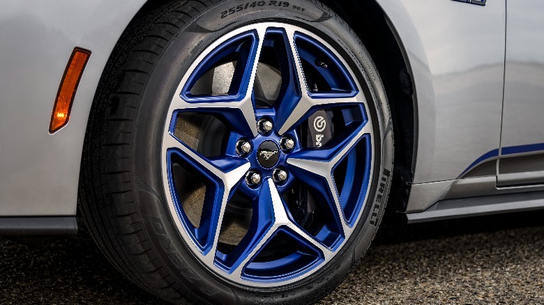 In addition to all the blue accents, you get your choice of 19-inch wheels, one set is finished in Carbonized Gray with a "GT/CS" logo printed on it, while the other Performance Pack wheels feature, you guessed it, Rave Blue accents. The Performance Pack also comes with a specific badge in addition to the California Special badging.