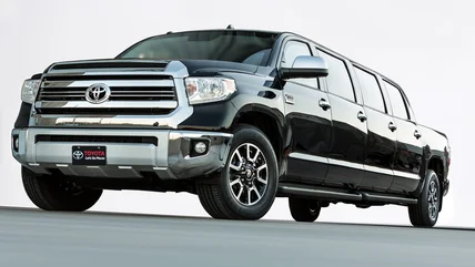 Toyota trucks like the Tacoma, Hilux, and Tundra have traditionally been among the brand's best sellers, accounting for nearly a million units sold worldwide last year. It's doubtful many Toyota truck owners, if any, sat behind the wheel of their trucks and said, "Gee, it would be nice if I could fit 10 more people in here." But for some reason, Toyota felt the need to assemble a 26-and-a-half-foot-long Tundra for the 2015 SEMA show.