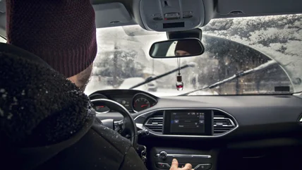 A good wintertime routine is to start your engine, get out of your car to remove any ice or snow, give your defroster enough time to start blowing warm air, and get on the road as soon as possible.