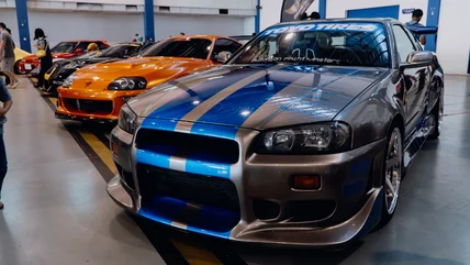 Brian O'Conner's 1999 Nissan Skyline GT-R R34 is one of the most iconic vehicles in the series. It featured a powerful 2.6-liter RB26DETT twin-turbo inline-six, making it one of the fastest cars on the block. The GT-R's notable style came from its Sunline Racing body kit, its House of Kolor Platinum Pearl paint job with blue stripes and decals throughout, and that iconic neon blue under glow that was rampant in street cars in that era.