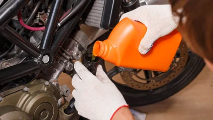 Keeping your bike's engine lubricated is a fundamental part of motorcycle maintenance, and there are many different oils available. High-performance motorcycle engines produce more pressure than car engines, meaning motorcycle oils must work much harder, and good quality oil is even more important. Factors that might affect your choice of motorcycle oil include your ideal viscosity grade, riding style, general climate conditions, and engine factors such as two-stroke and four-stroke mechanisms. The higher the viscosity grade, the thicker the oil. Low viscosities operate better in cooler temperatures, while high viscosities are well-suited to hot conditions.