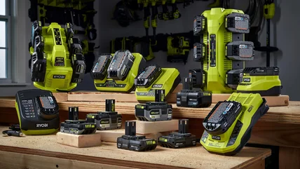 Ryobi has one more ONE+ charger on its line meant for just one battery, the Dual Chemistry Charger. Unlike the other single-battery models, this charger features three LED indicators instead of two. The top one is orange, the middle red, and the bottom green. A steady red light still means your charger is on and ready to charge. A flashing green light signals a charging battery, as well as a steady green light for a fully charged one. Now, things get a little more complicated.