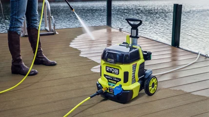 When it comes to cleaning patios, fences, and decks, power is essential. But finesse is paramount. The pressure applied should be sufficient to remove dirt and stains, yet gentle enough to avoid unintended consequences. One crucial consideration is to keep the pressure down when dealing with wooden surfaces. High pressure can strip the boards of your deck, patio, or fence, leading to unintended damage that might compromise both aesthetics and structural integrity. A 1500 PSI Ryobi pressure washer will have about the level of power that's ideal for this job.