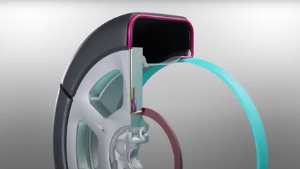 "During normal driving, the shape memory alloy located inside the wheel is compressed into the shape of the letter 'L' and does not contact the road surface," Hyundai says. "When the driver activates the function, an electric current is applied, causing the shape memory alloy to revert to its original profile: the material forms a 'J' shape, pushing the module out of the tire to make contact with the surface, improving grip, stability, and safety on snowy roads."