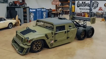 On a recent episode of Gas Monkey Garage, the guys said their vehicle "all started as a joke" when Nicolas Pulver of Frenchy Exports had a Humvee body in his backyard and spitballed ideas with Alexandre Danton, owner of Danton Arts Kustoms. It took them about 10 weeks to build. Danton is the mind behind the 6x6 Rolls-Royce Phantom and the Mutant Mercedes G-Class, among other jaw-dropping vehicles.