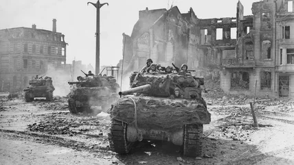 Tanks were usually involved in any invasion in the European theatre during World War II. The German Panzer Is and IIs spearheaded the invasion of Poland, while the later Panzer IIIs and IVs were used against France and the Soviet Union in 1940. On the other end of the spectrum, the Soviets used massive numbers of T-34s and KV-1s to overwhelm the Germans starting in 1943 at the Battle of Kursk, while the Allied landings at Normandy had several M4 Shermans.