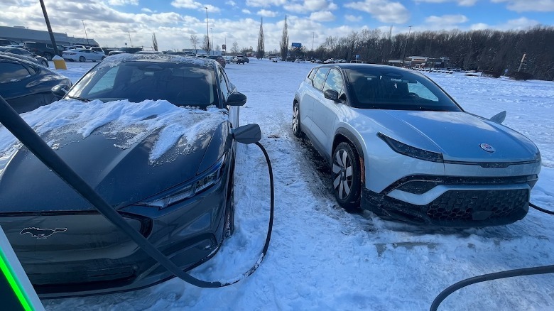 Unlike Tesla, Ford has been making cars nonstop for the better part of a century, producing automotive icons like the Ford F-150 and Mustang. The Big Blue Oval's two main electric cars are modeled after those icons to a varying degree of closeness. The F-150 Lightning just looks like a run-of-the-mill F-150, albeit with some lighting changes and the fact it, you know, doesn't have an internal combustion engine. The Mustang Mach-E is a Mustang really in name only. Since 1964 and a half, gas-powered Mustangs have primarily followed one shape: a two-door coupe, and the Mach-E is not one of those. It's a four-door crossover (maybe a wagon?). It does, however, have several Mustang badges on it, instead of the Ford oval.