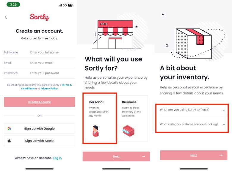 When asked what you'll use Sortly for, tap "Personal" and select Next.