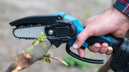 This mini-chainsaw has a 4.6/5 rating from over 300 reviewers. Many comments have stated that having the ability to easily start the electric tool, cut what's needed, and be done quickly is a huge time-saver, especially compared to handling a gas chainsaw. However, one negative that was pointed out for left-handed users. The trigger is not ambidextrous, so you have to use your right hand.