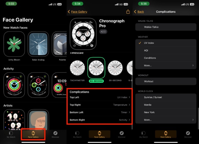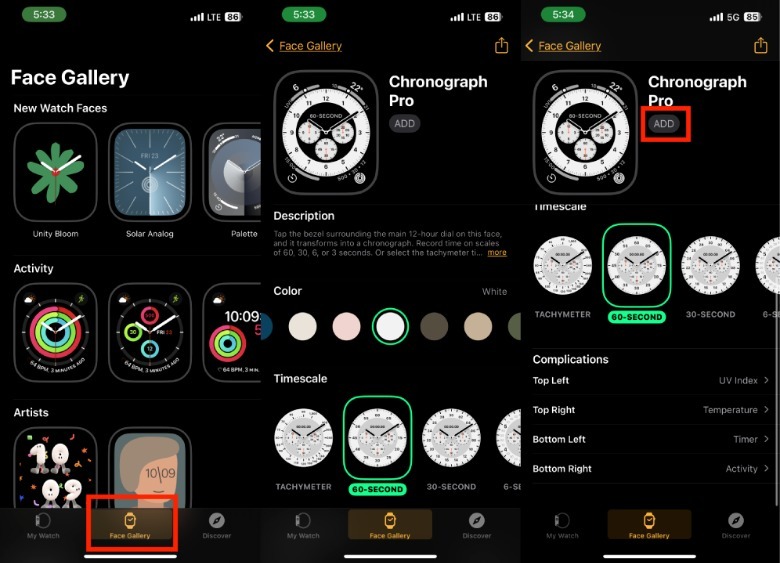 The level of customization options will vary depending on the watch's face, but they will typically include options to change the color, character, or collection theme. Once you've chosen your preferred Apple Watch face, you can simply select your preferred design in the Face Gallery and tap Add located at the bottom of the face name.