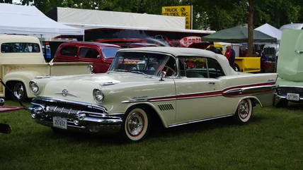 The Pontiac Bonneville legacy started in the eponymous salt flats in 1954 with a hyper-expensive Space Age racer, and its 1957 mass market debut was less a car than a trim level. The first Bonneville was a high-performance upgrade of the Pontiac Star Chief. At the time, it was the fastest production Pontiac ever made, with a 315hp, 347 cubic-inch V8 that ran 0-60 in just nine seconds. It didn't skimp on luxury, either: the 1957 Bonneville came with Hydra-Matic automatic transmission, power everything, and sleek leather upholstery. All that justified the then-high sticker price of $5,782 — better than $60,000 today.