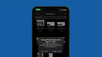 First, you'll need to update your iPhone if you're still running iOS 15 or earlier. Next, open the Files app and the folder that contains the items you want to convert, then long-press on your target file. Next, select Rename from the pop-up menu, and edit the file extension to whatever format you want it converted to. For example, if you're converting a JPEG to PDF, delete the .jpg file extension and replace it with .pdf. Files will show you a dialog box asking to confirm the conversion, and the process is complete once that is done.