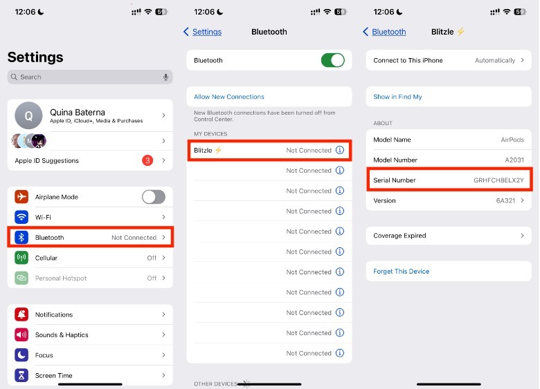 Once you click the device name, it will lead you to a page showing your AirPods protection details, including the date of purchase and serial number.