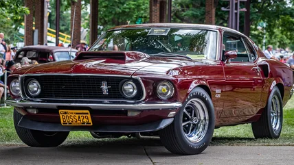 Finally, the Boss 429. You probably associate the word "Hemi" with Dodge. However, the Boss 429 V8 engine also used hemi heads, known as such for the hemispherical combustion chambers. Ford built the Boss 429 Mustangs to homologate the 429 engine for NASCAR racing. It's extremely unique because of its hemi heads, center-mounted spark plugs, and forged steel crankshaft. In production format, they made 375 horsepower.
