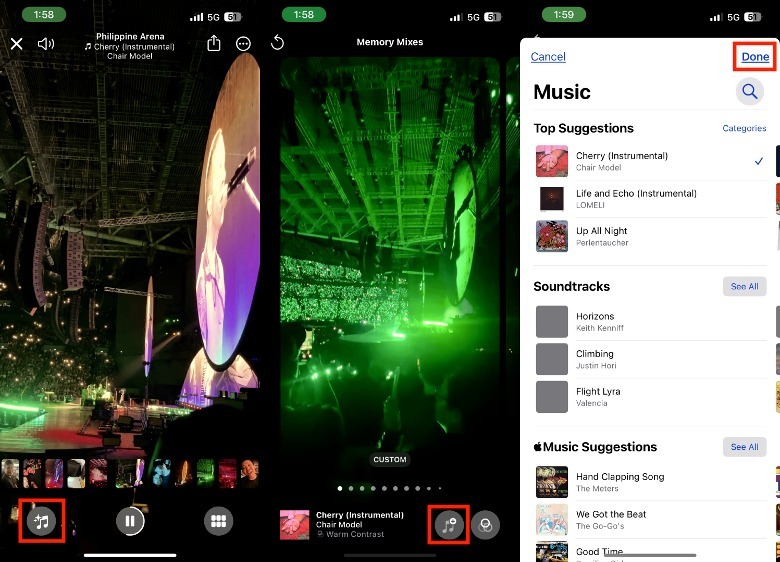 To change the music and even the look of your Memory Mix, open the Memory you want to edit and follow these instructions: