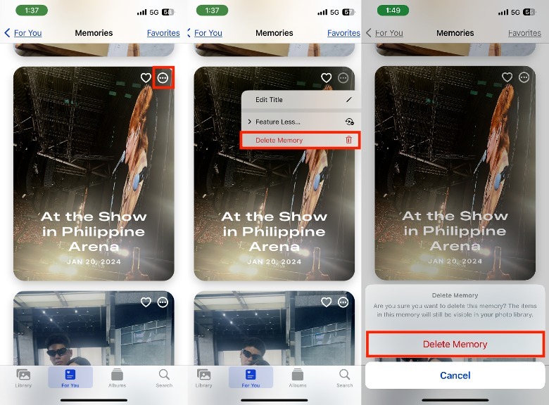 In the pop-up, confirm your decision by tapping Delete Memory again.