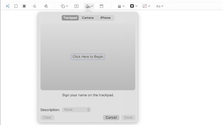 - Click Create Signature and choose how you want to add your signature — via the trackpad (or mouse), Mac's webcam, or signing on your iPhone or iPad.
