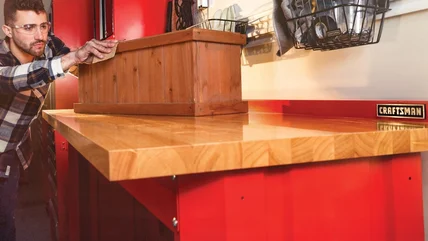 The wooden butcher block top provides a comfortable work surface, and the bright red Craftsman frame adds a pop of color to any home garage or DIY workspace. While the workbench doesn't include any storage provisions, it is tall enough to fit toolboxes or other cabinets up to 35.7 inches tall underneath.