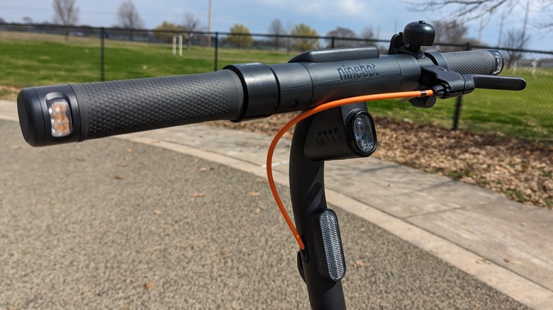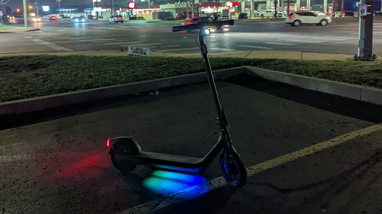During nighttime riding in a city setting, the headlight illuminated the road ahead very well, and the light show beneath the E2 provided some peace of mind knowing it increased visibility. Furthermore, LED turn indicator lights at the ends of the grips can be activated by a switch on the handlebar and are surprisingly bright and accompanied by beeping. The bell might be helpful in a crowded scene, but its effectiveness is easily diminished by even modest ambient noises.