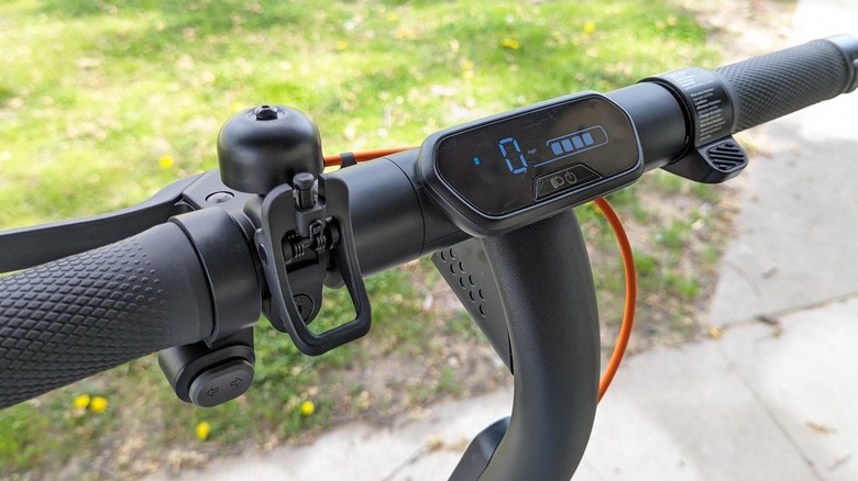 The handlebars also include a bright display with crisp graphics indicating speed, battery life, and a few other functions, such as driving mode. Below the footboard are LED lights illuminating the ground in a range of colors that can be set for solid color lighting or a fluctuating display. Finally, to warn others of your presence, Segway has included a thumb-actuated bell of the old-school and low-tech variety, which is an archaic but charming little feature.