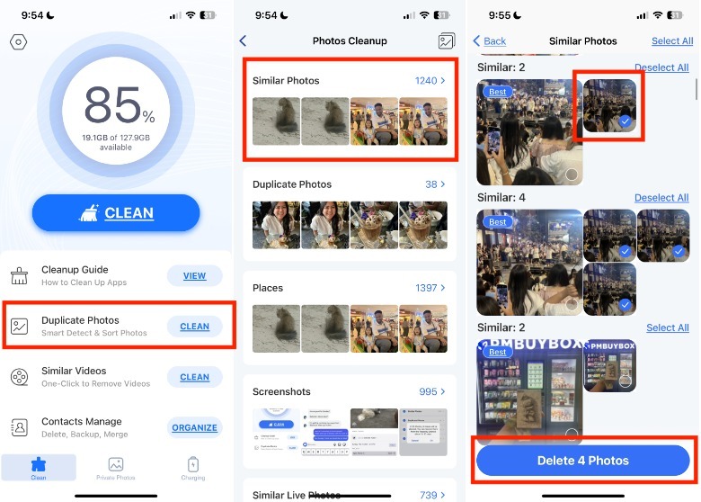 If the built-in Photos app Merge feature isn't enough for you, you can download a third-party app like Phone Cleaner, which has an average rating of 4.6 stars from over 92,500 users on the App Store. Depending on your needs or how frequently you catch yourself running out of storage space on your iPhone, you can get a one-week subscription ($3.99) or a lifetime subscription ($59.99). Here's how it works: