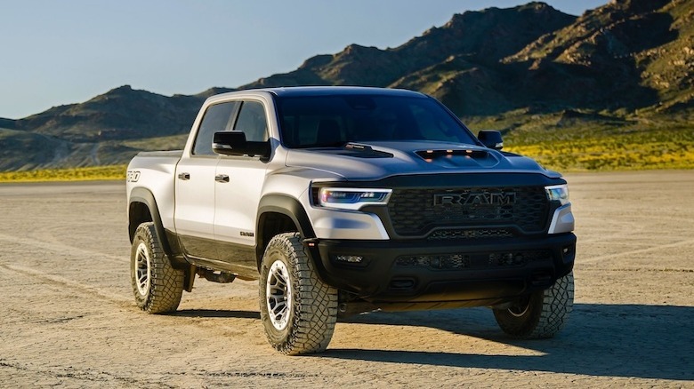 Ram has unveiled its newest performance truck for the 2025 model year — the Ram 1500 RHO. While the 5.7-liter V8 may be gone, a new engine that Mopar fans may be familiar with has been introduced into the lineup: a "high-output" 3.0-liter twin-turbo inline-6. According to a press release from Ram, it'll throw down 540 horsepower and 521 pound-feet of torque. While it's explicitly stated that the 1500 RHO won't replace the supercharged 700+ horsepower monster that is the Ram TRX, the RHO is a new performance Ram set to go against the likes of trucks like the Ford Raptor or Chevy Silverado Trail Boss with its optional 6.2-liter V8.