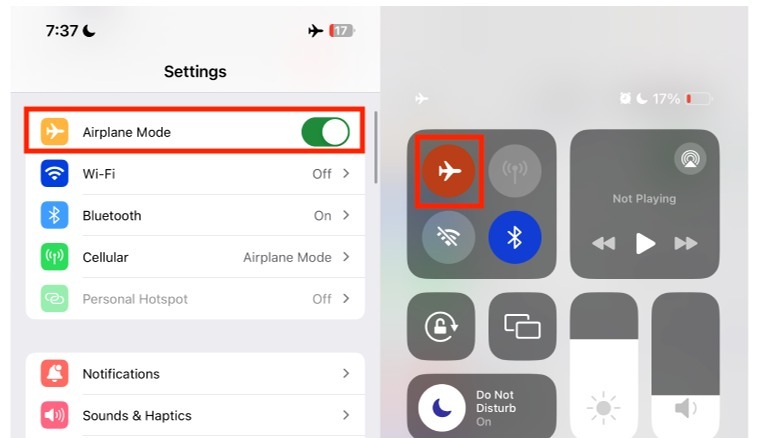 When it comes to electronic devices, there's one piece of advice that stands the test of time: Try turning them off, and then back on again. But, before you turn off your device completely, enabling Airplane Mode on your macOS, iPhone, or iPad might also do the trick. For iOS and iPadOS devices, you have two ways to turn on Airplane Mode: swipe down from the upper-right corner of the screen and tap the airplane icon in the upper-left corner of the screen or launch your Settings app and next to Airplane Mode, toggle on the button.