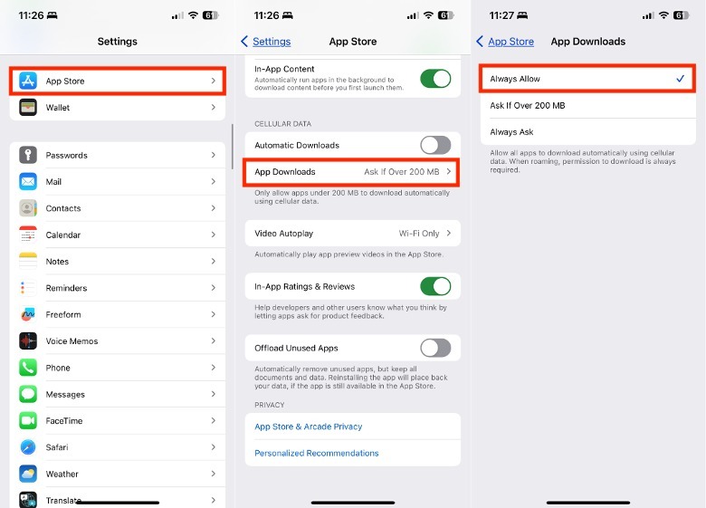 Under Cellular Data, tap App Downloads.