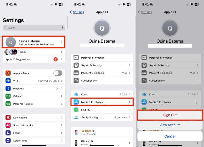 Sign out of Apple ID